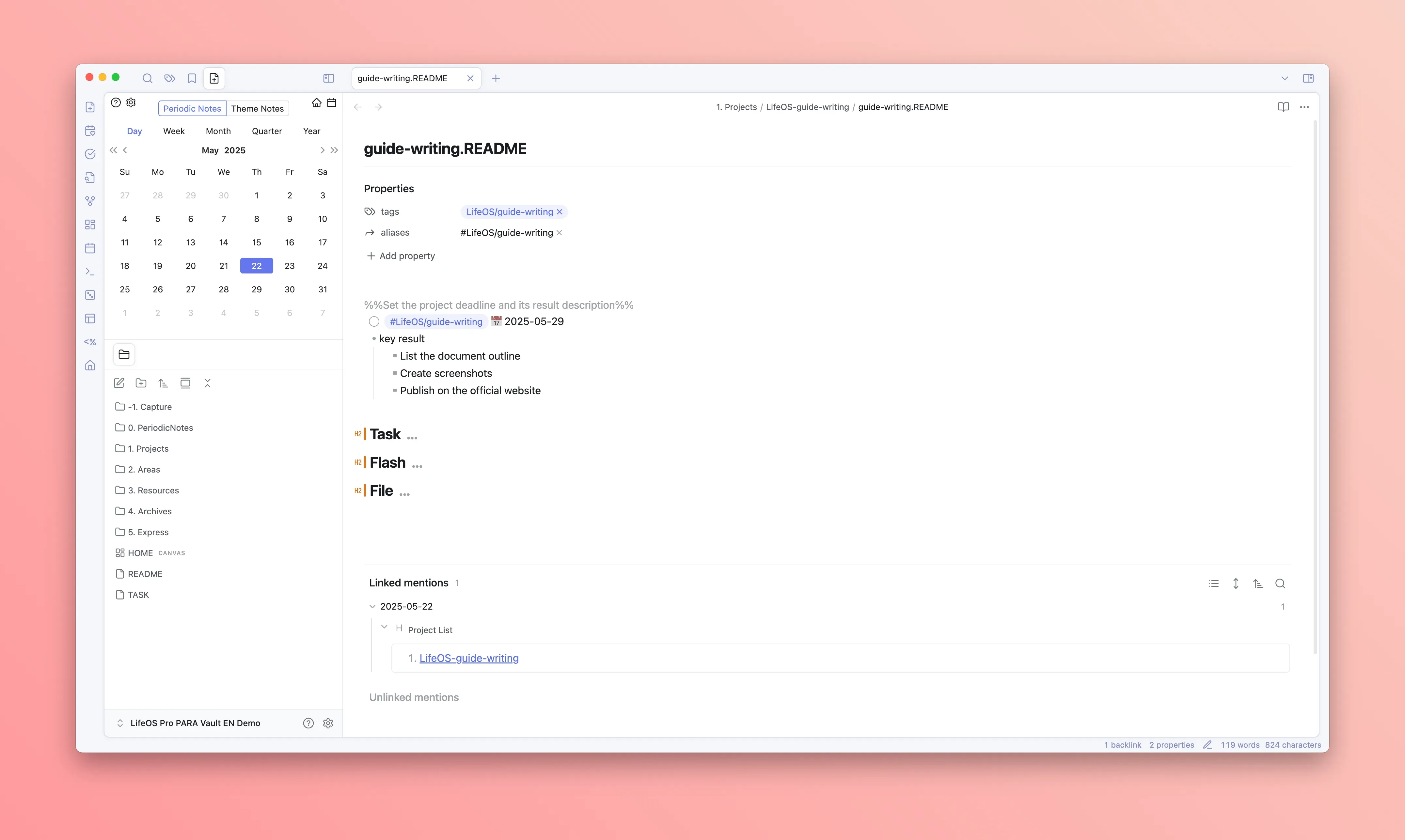 How to use Obsidian for project management? Here, I'll use the "Writing LifeOS Tutorial" project as an example.