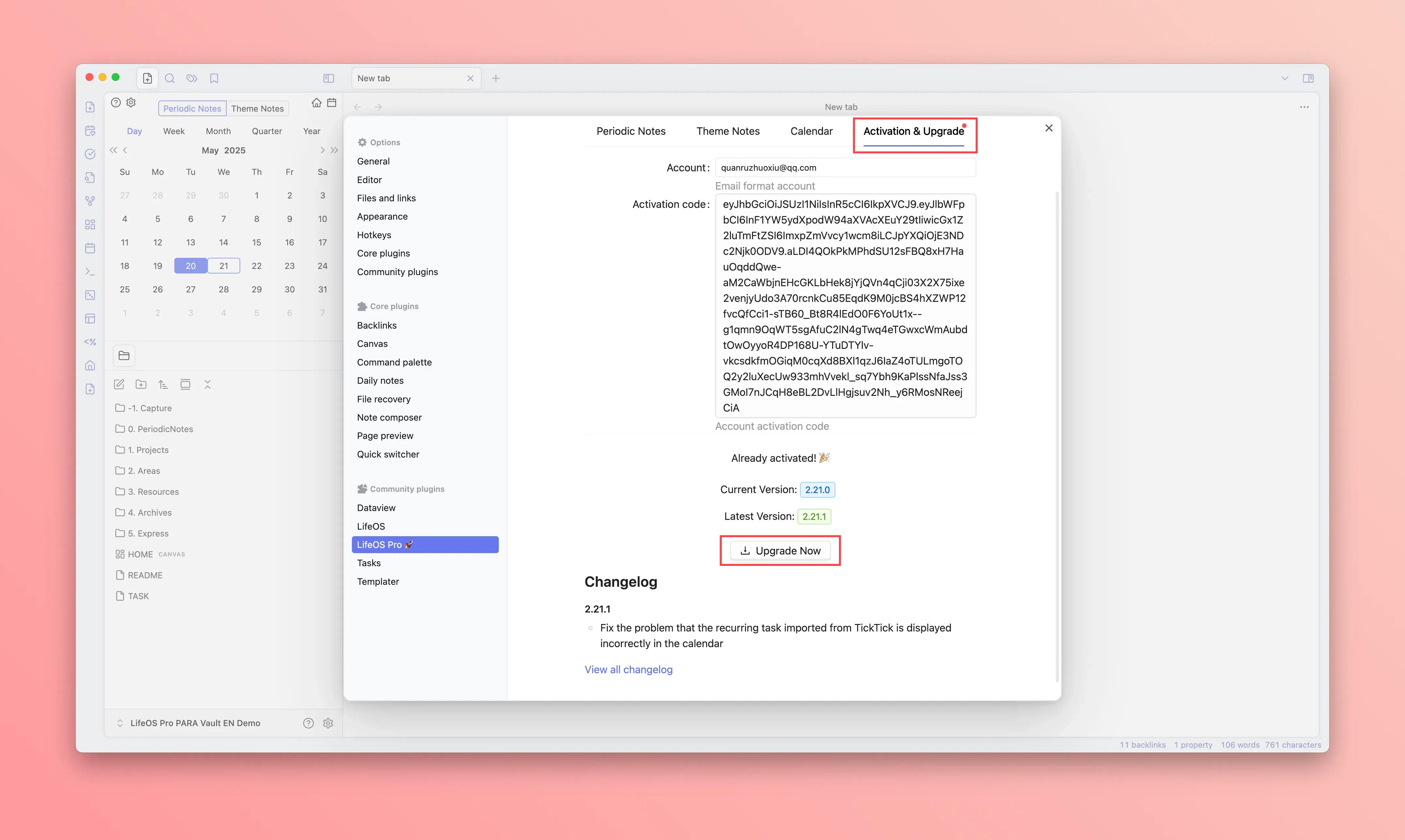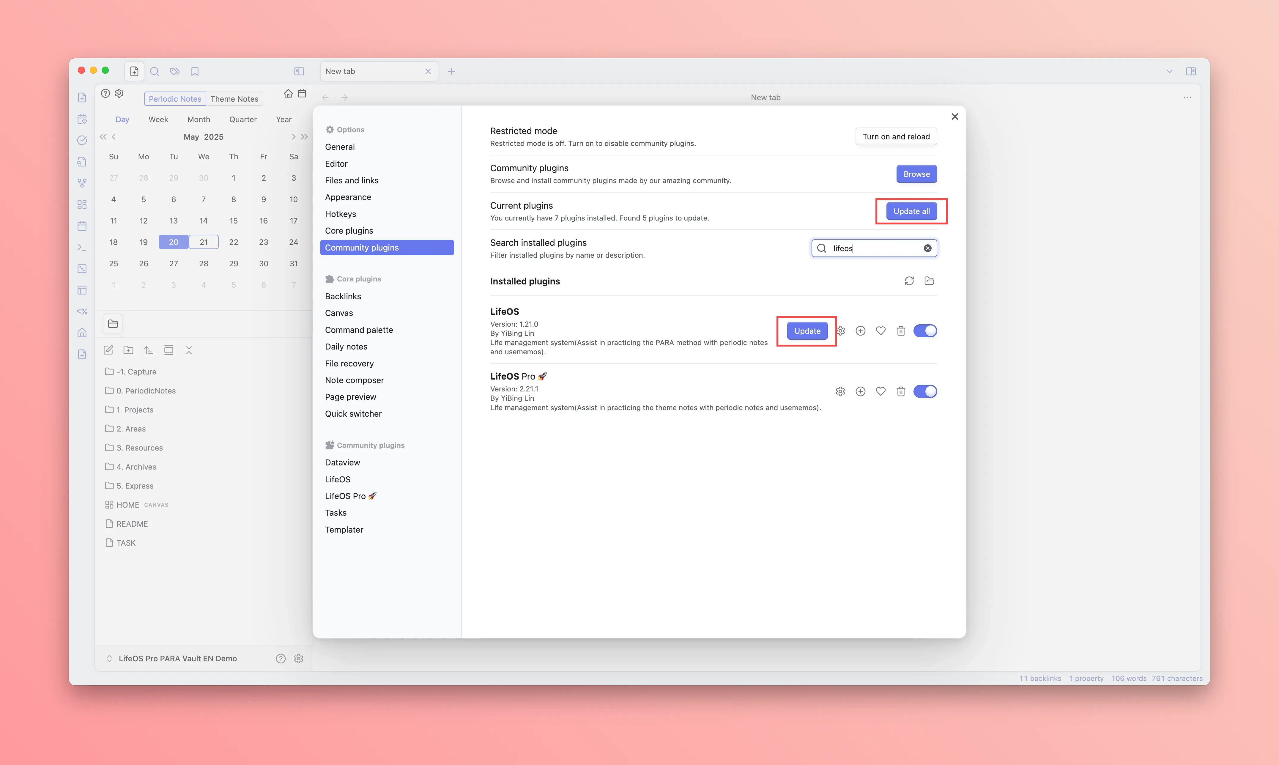 The Pro version of the plugin needs to be updated using the update button within the LifeOS plugin: