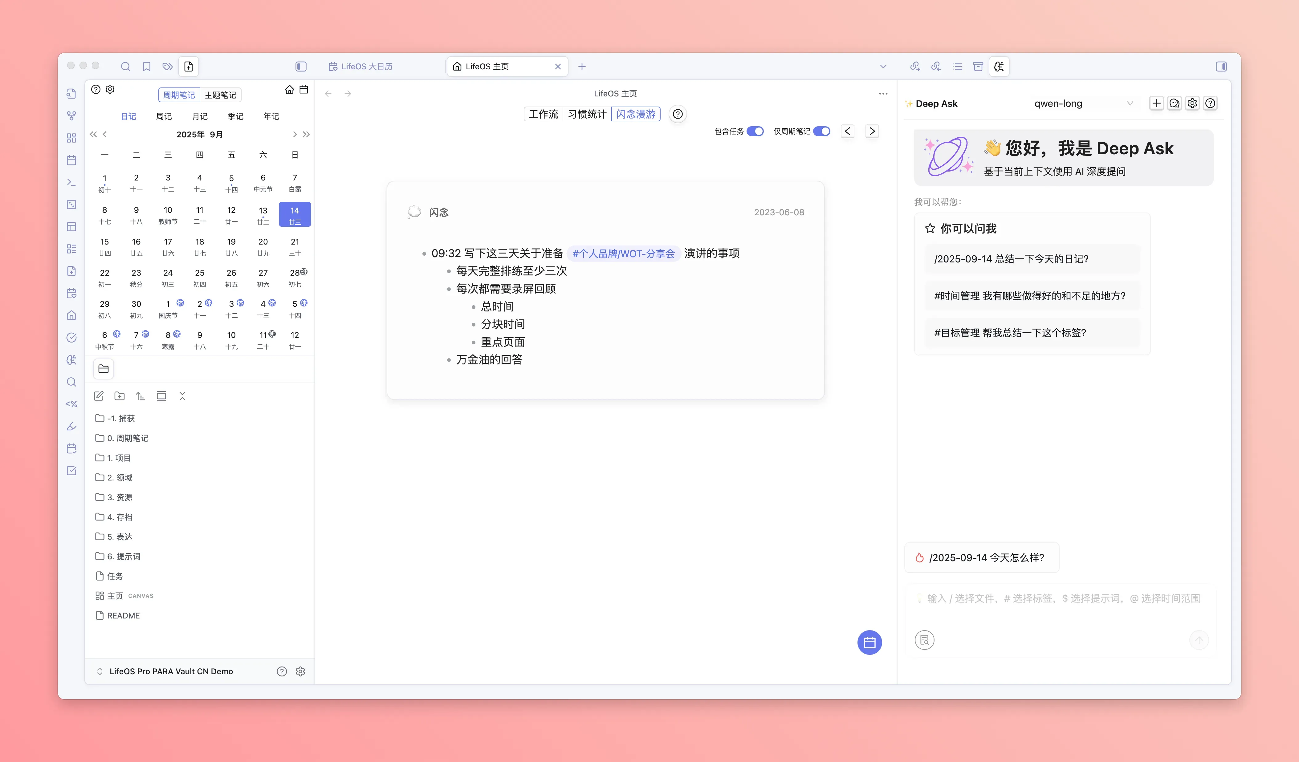 PARA notes have been upgraded to theme notes, with added toggle options, greatly reducing the learning curve for beginners. Users only need to focus on input, output, and themes to easily record, organize, and use notes.
