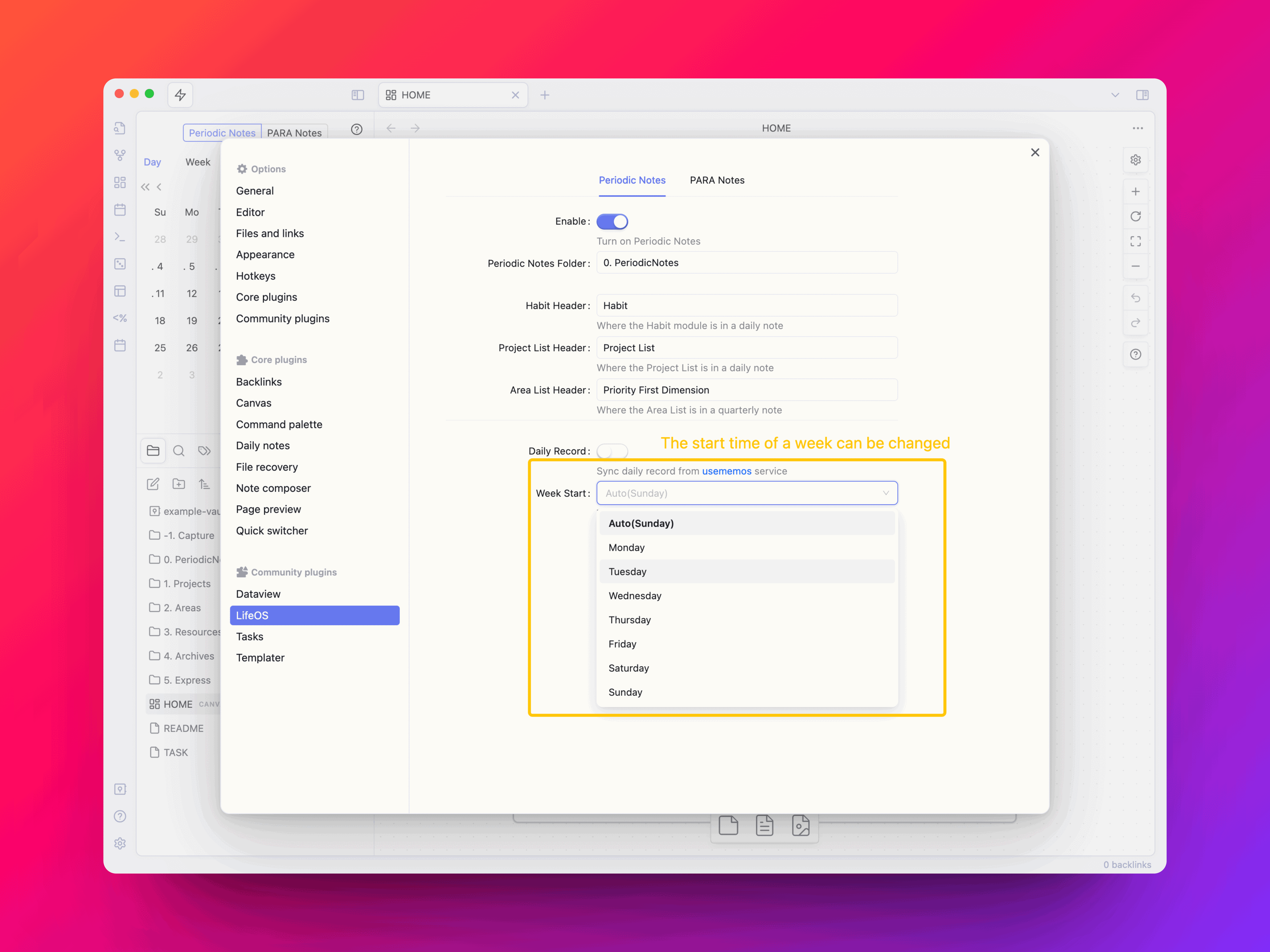 - Support the modification of the start time of the week