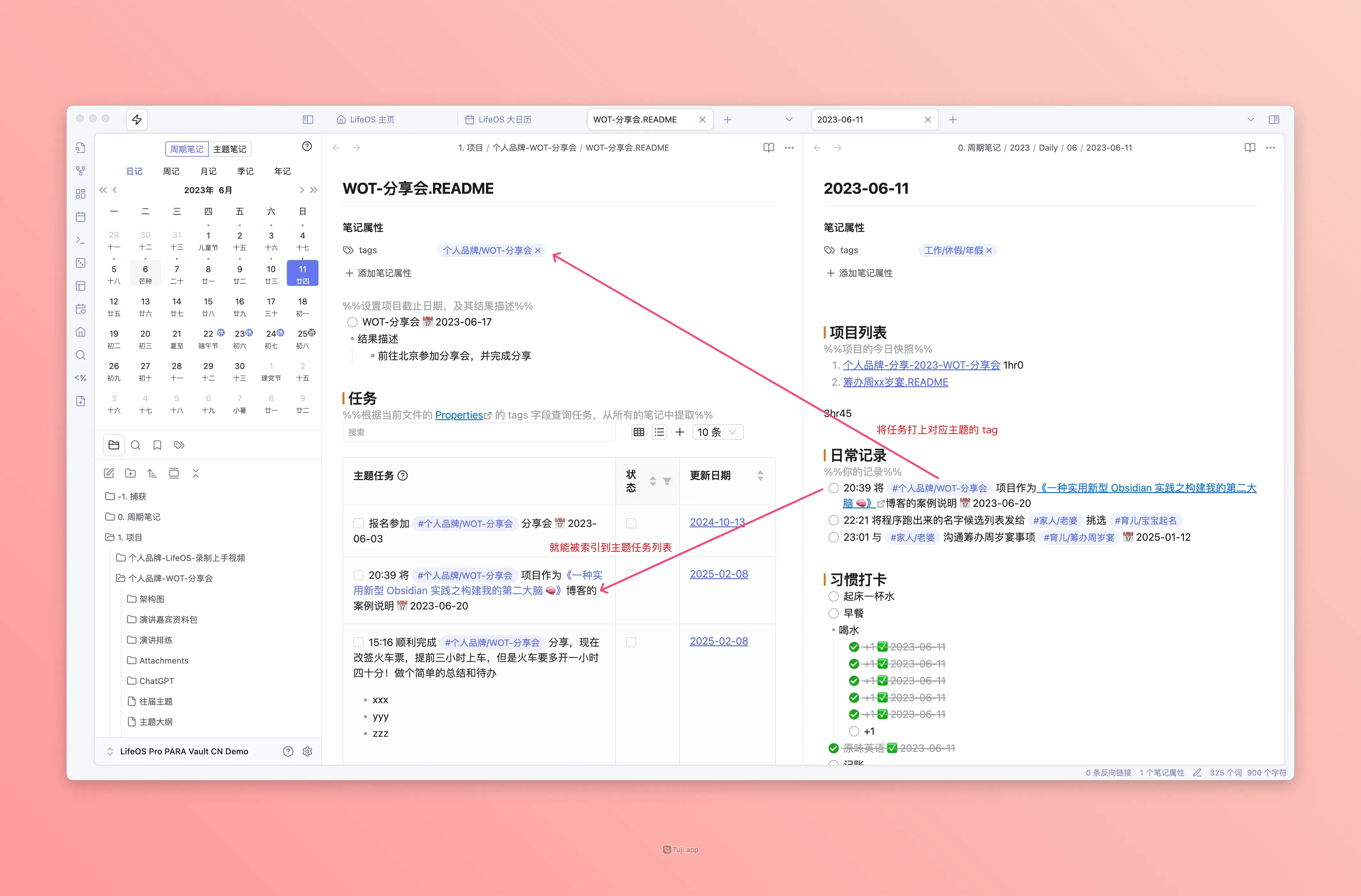 这样,每个主题笔记的索引都能够索引到各自『主题标签』下的『任务』、『列表』、『文件』!
