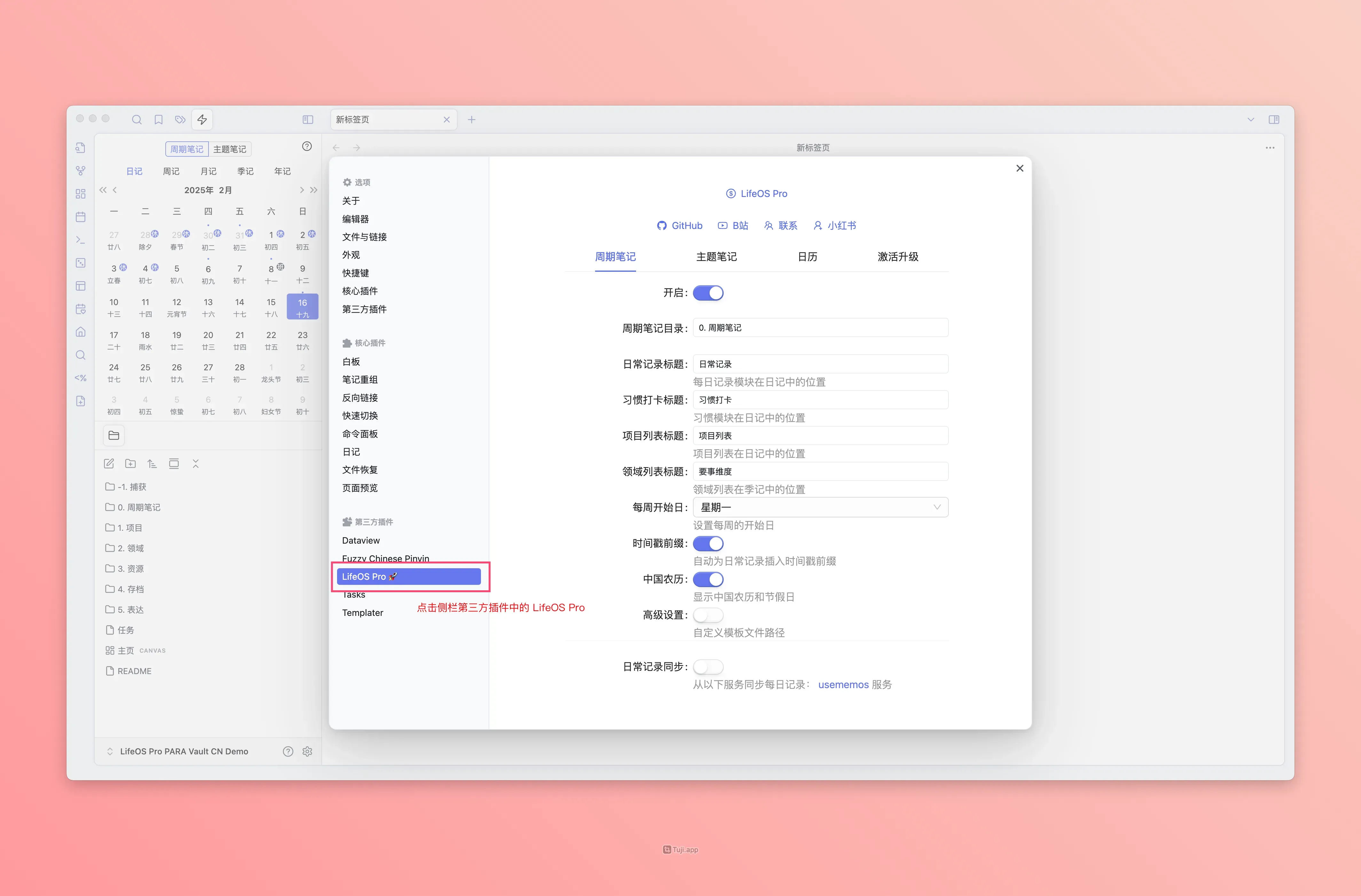 接着点击侧栏第三方插件中的『LifeOS Pro』即可