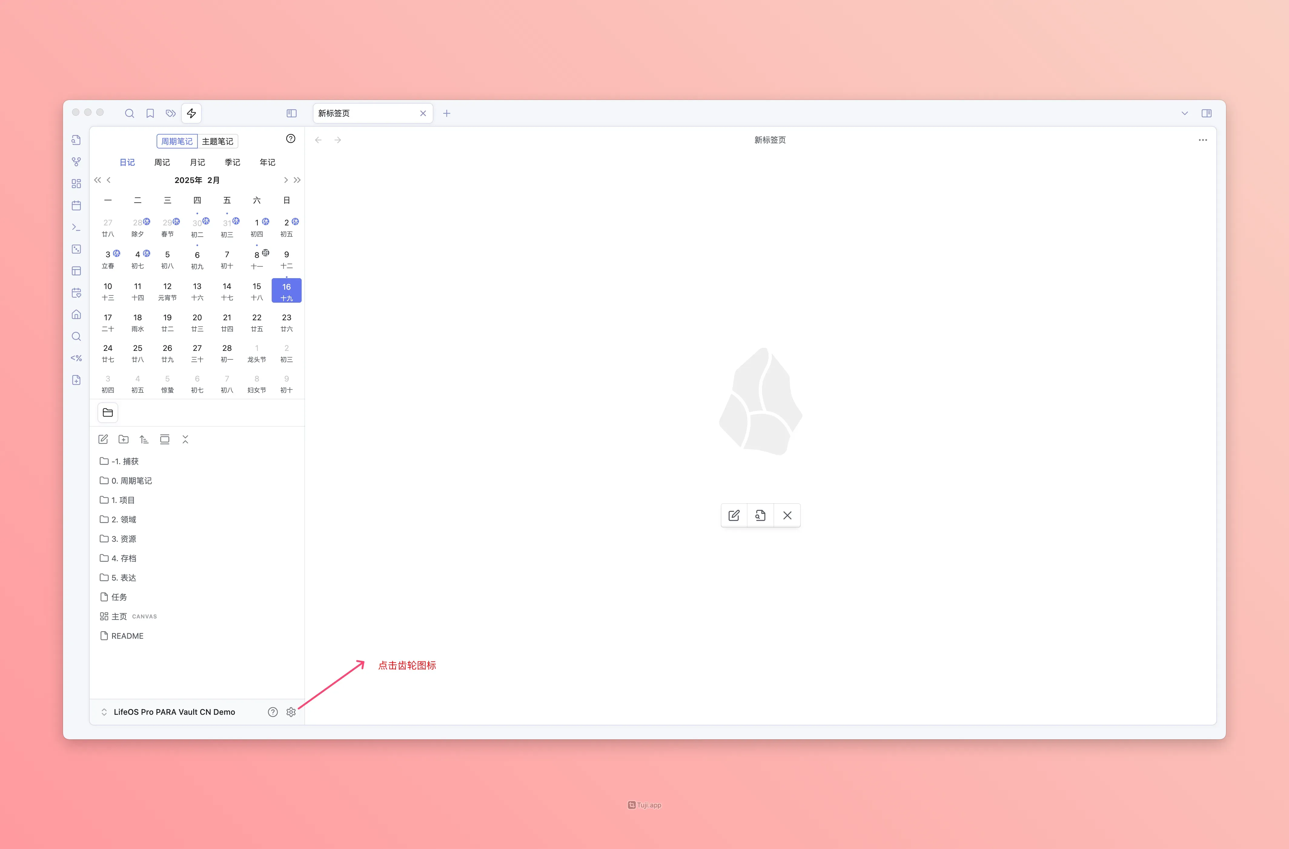 通常,你不需要改动配置,因为 LifeOS 提供了开箱即用的示例库,所有的配置已经针对示例库的目录做了适配。