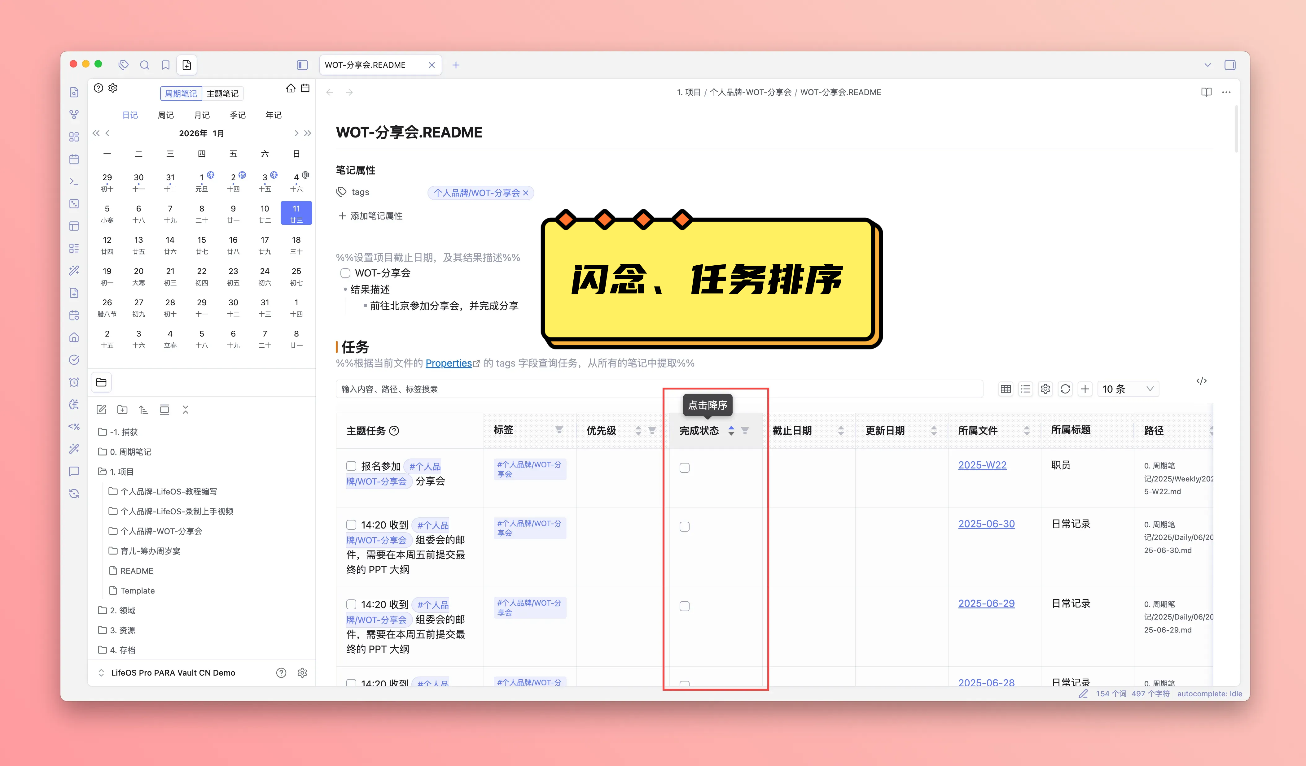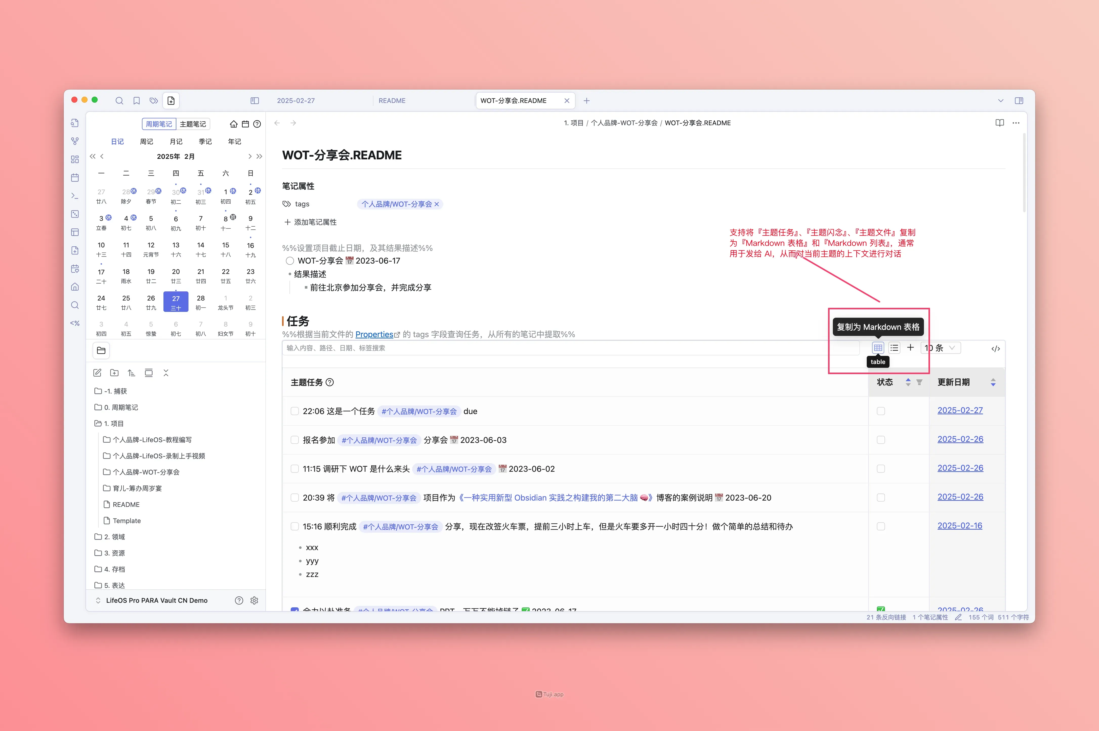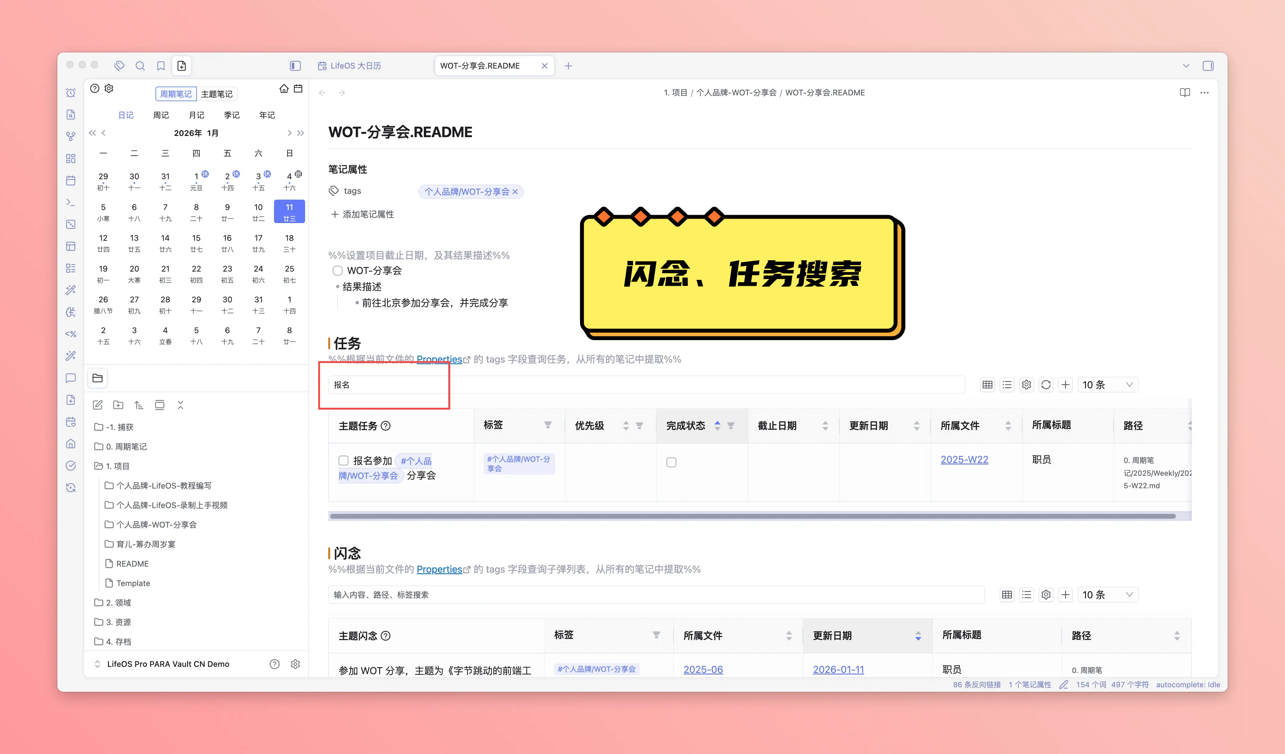 在笔记中创建『主题任务』、『主题闪念』、『主题文件』