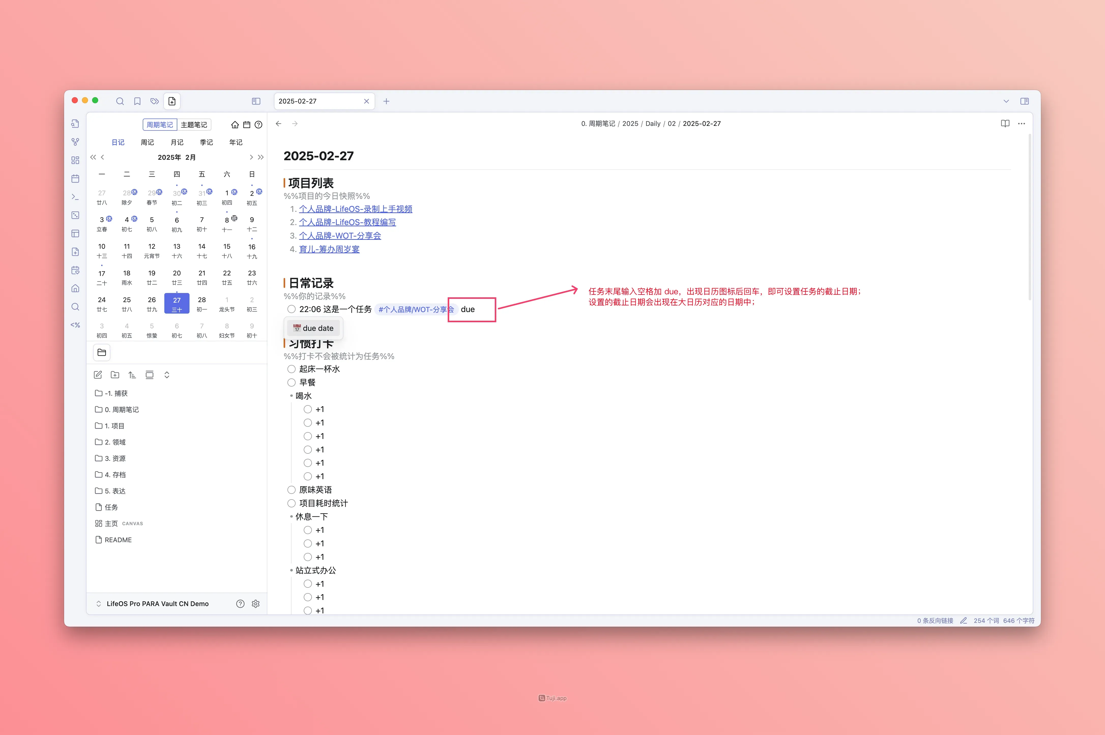 在 LifeOS Pro 大日历中创建