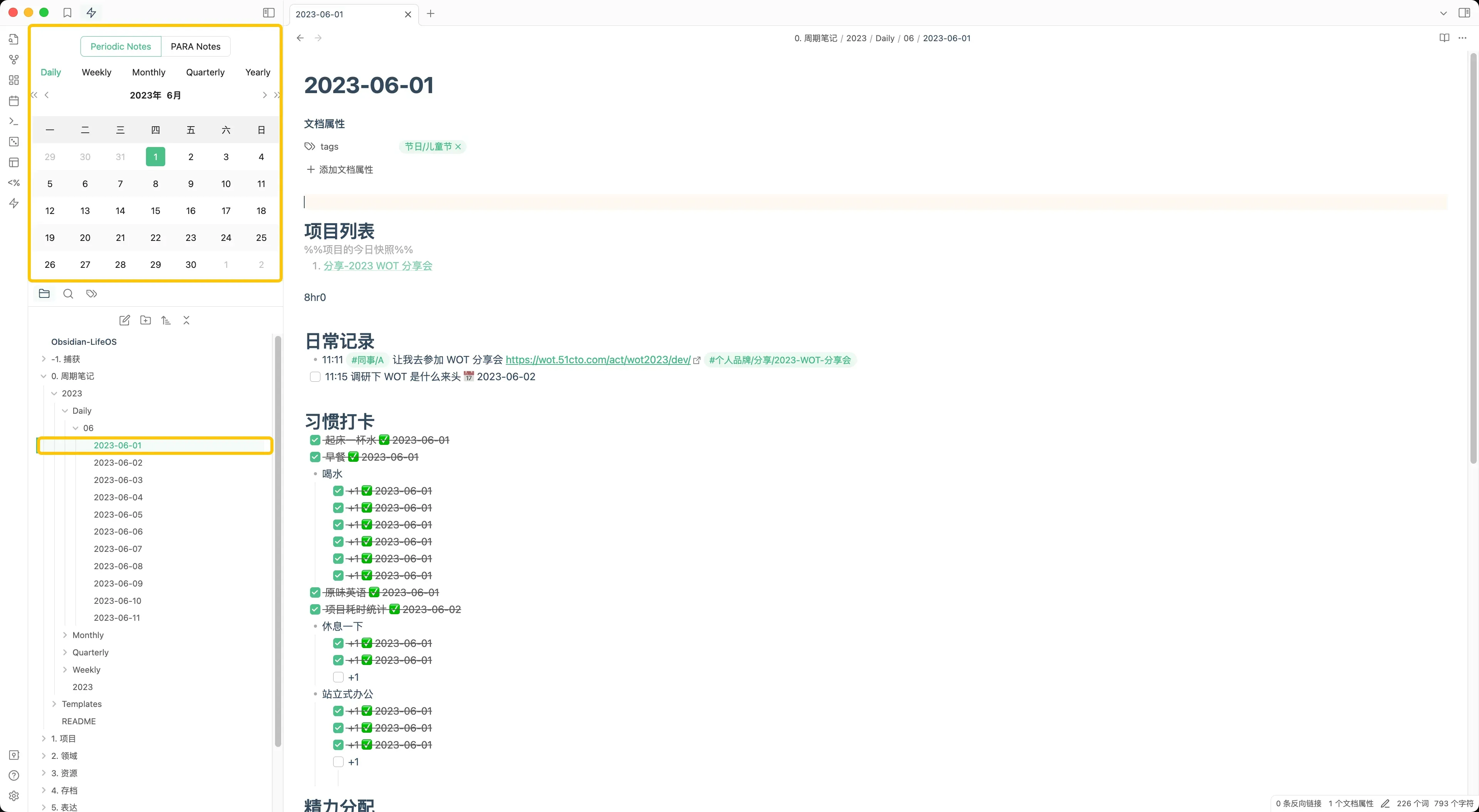 LifeOS 通过编写 markdown 代码块实现下面两类视图