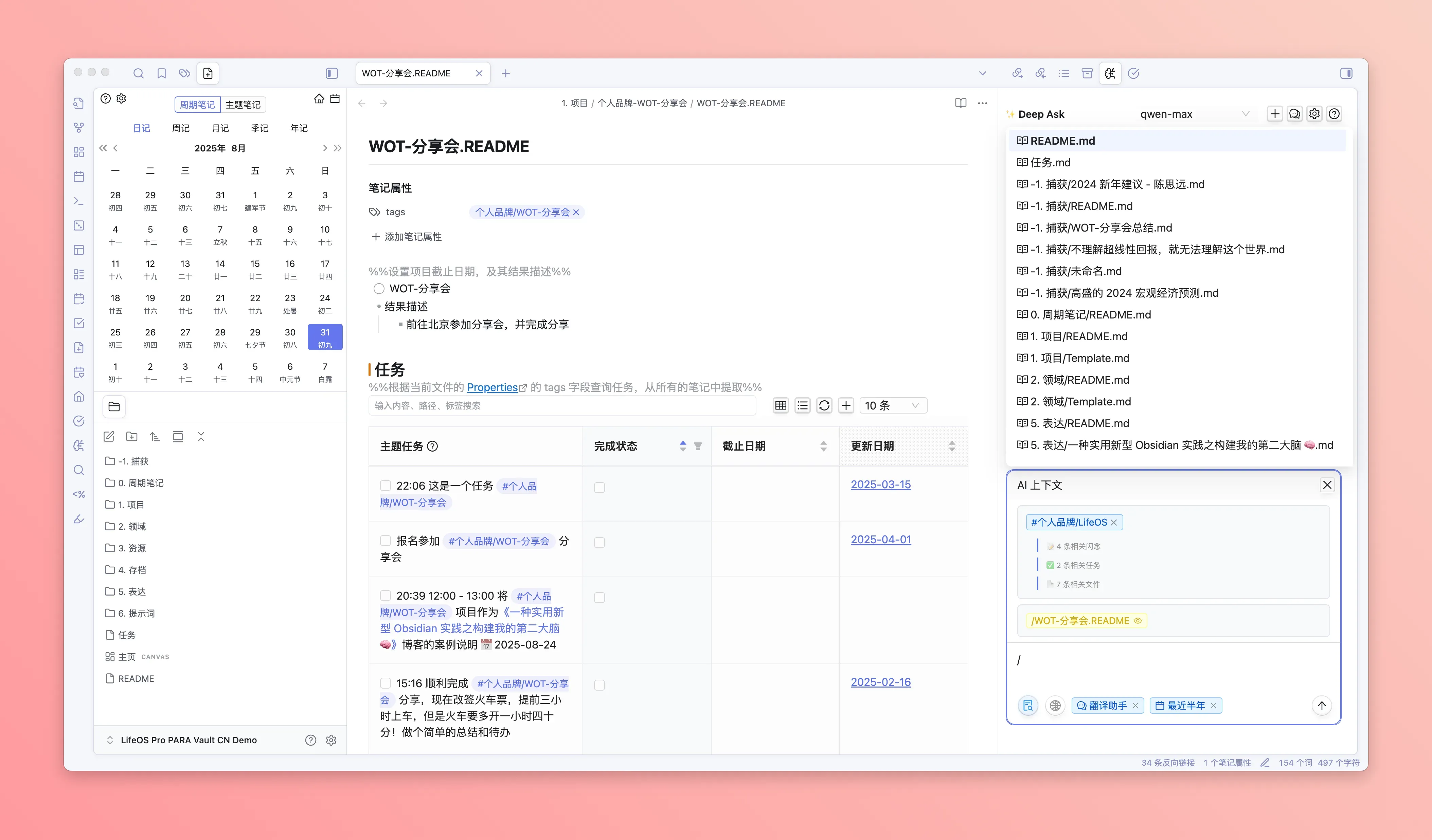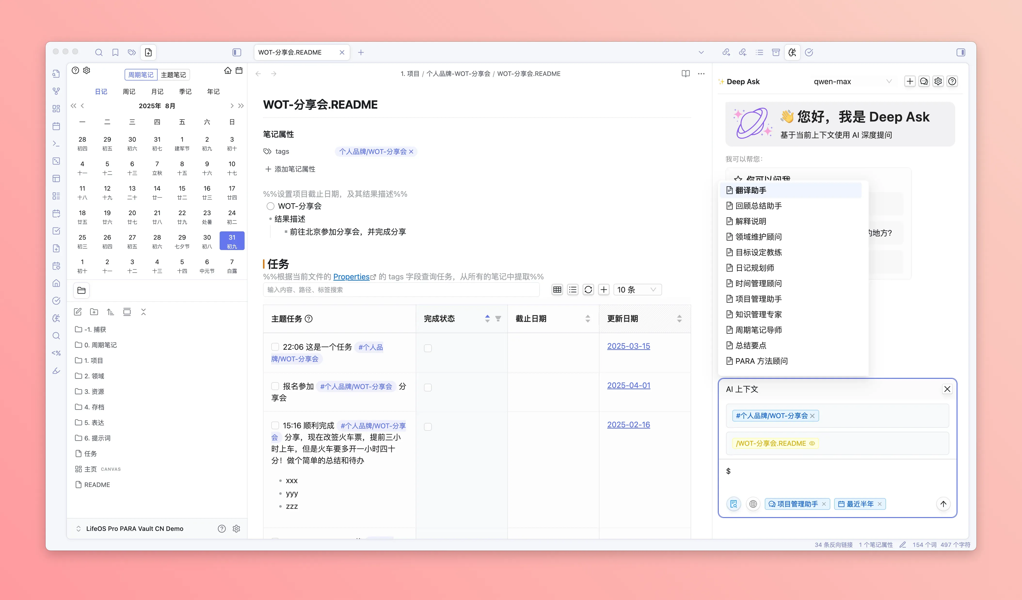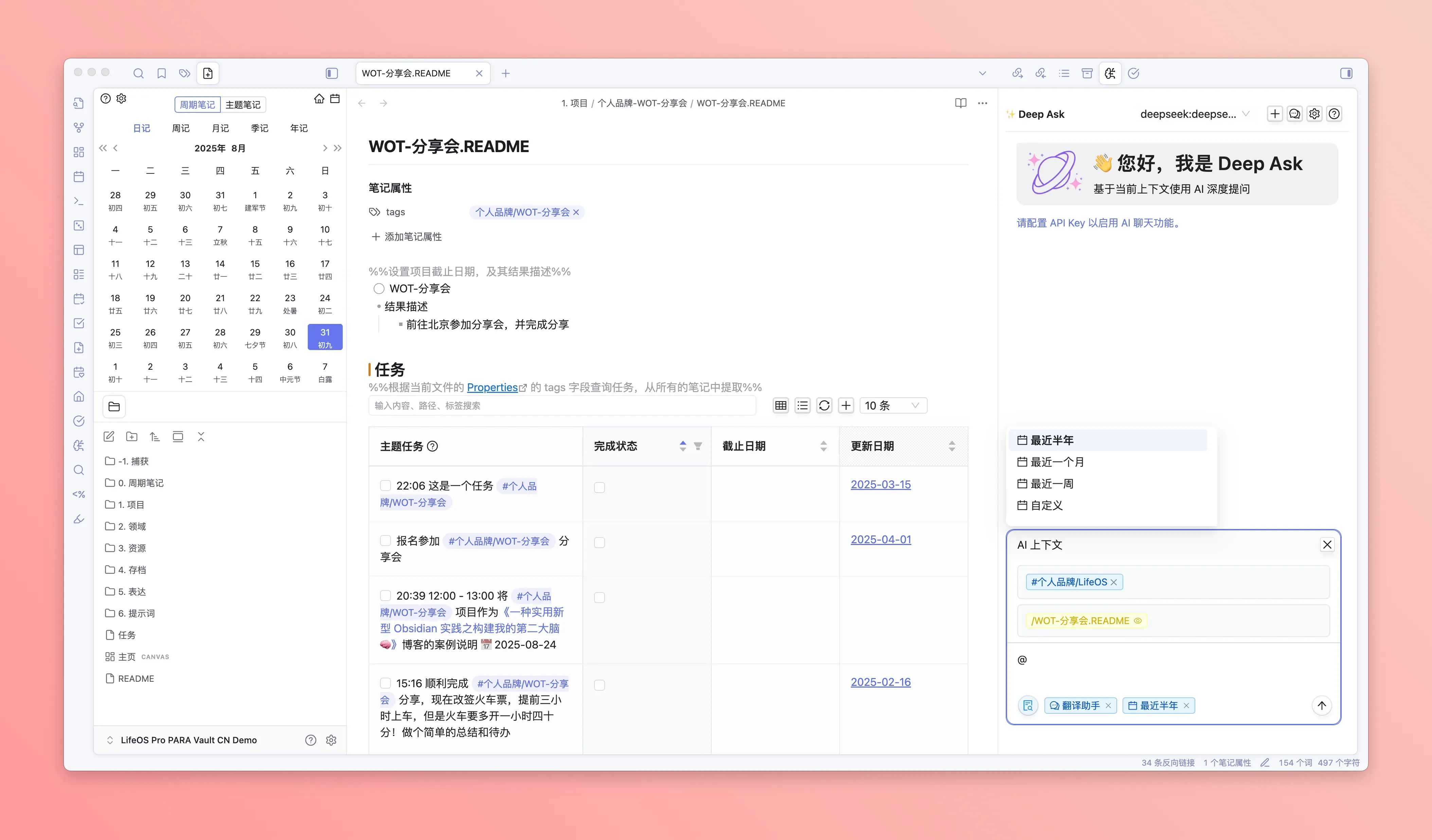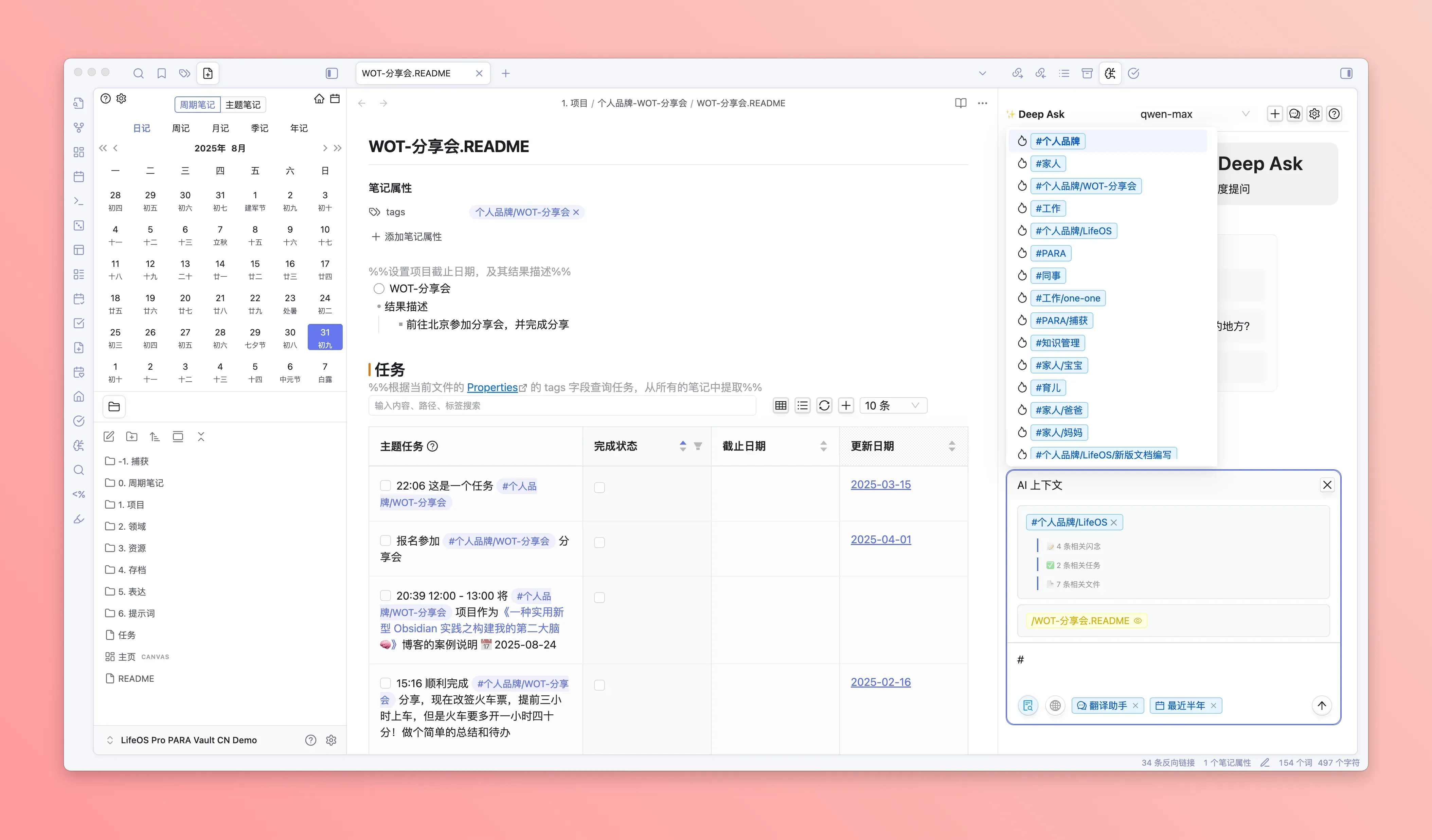 - DeepAsk 会自动搜索整个仓库下,包含该标签的任务、闪念笔记、文件等记录