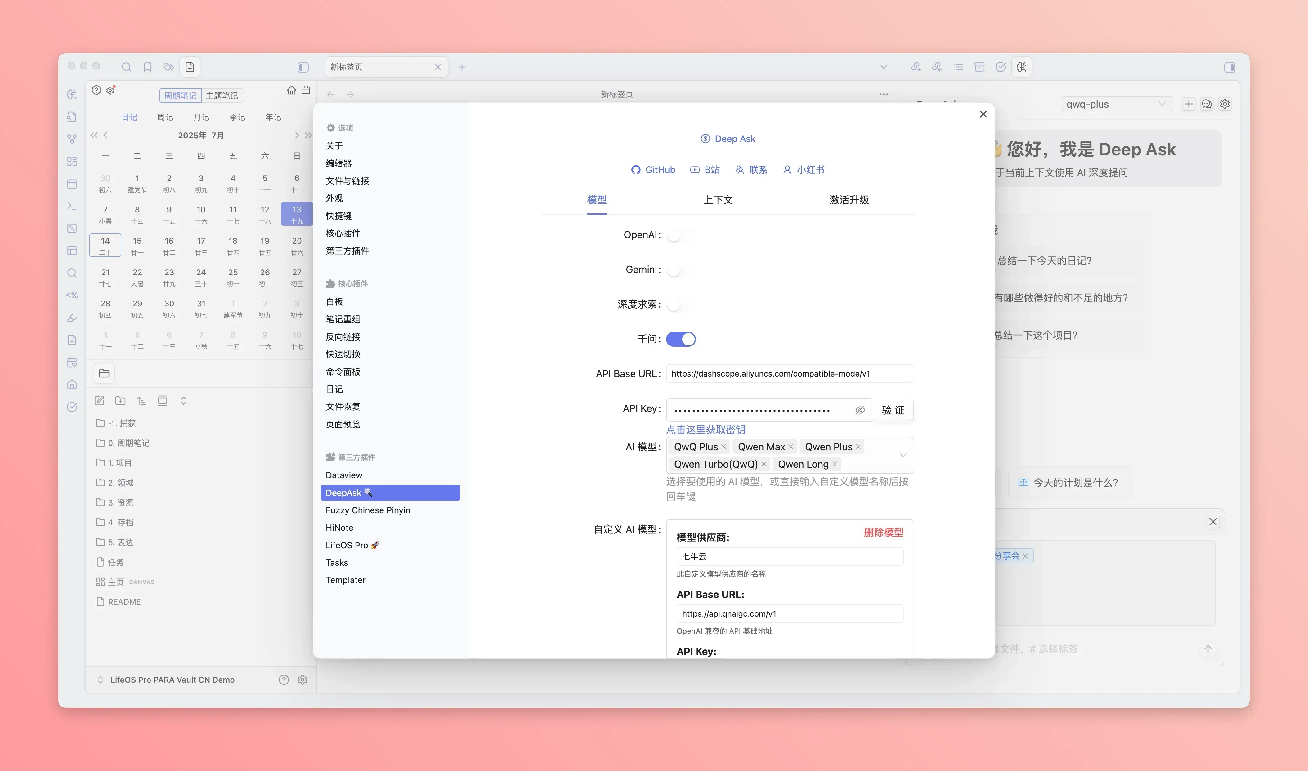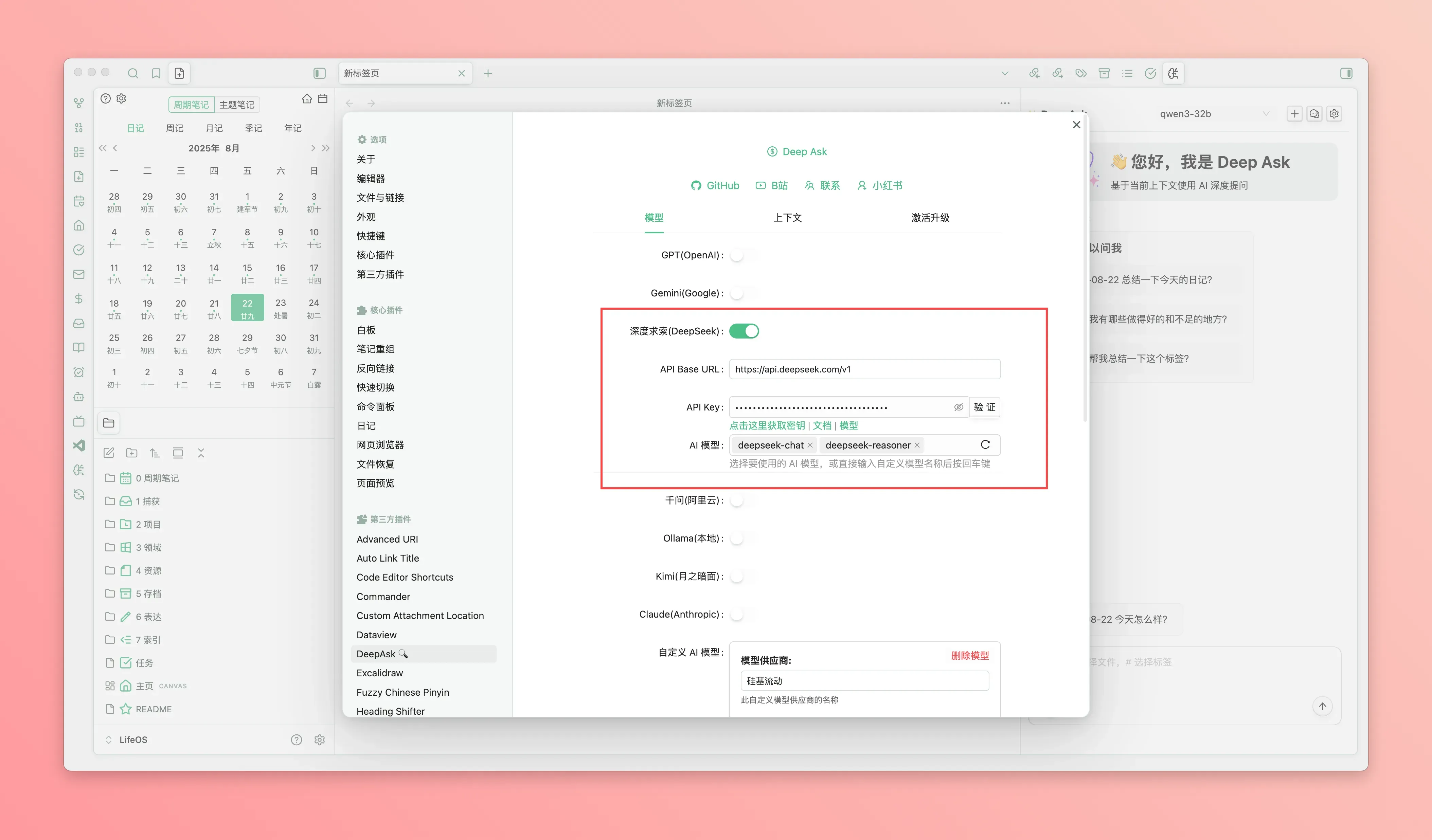 - 在插件列表中启用 Deep Ask