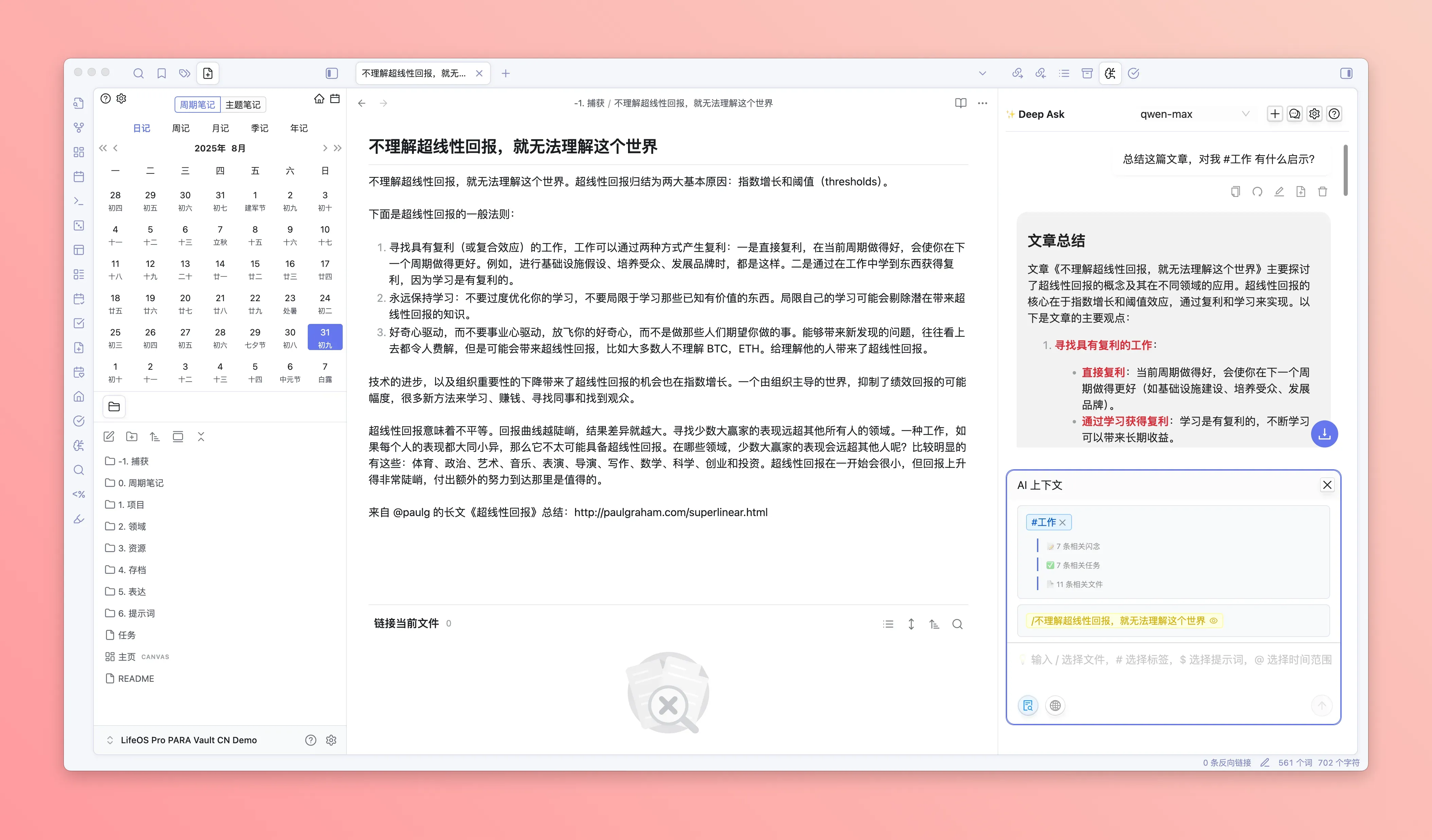 - 内容总结:让 AI 读取并总结您的笔记内容